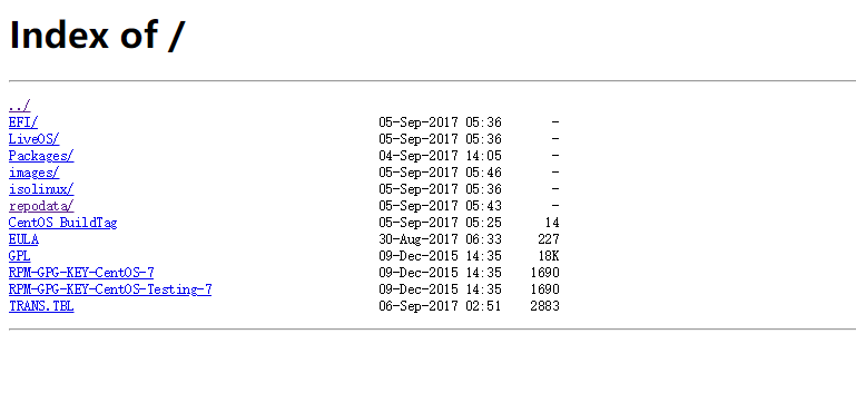 挂载镜像包: mount /root/CentOS-7-x86_64-DVD-1708.iso /mnt -o loop 删除nginx默认发布路径: rm -rf /usr/local/nginx2/html 配置软连接: ln -s /mnt/ /usr/local/nginx2/html 启动nginx 进程 /usr/local/nginx2/sbin/nginx