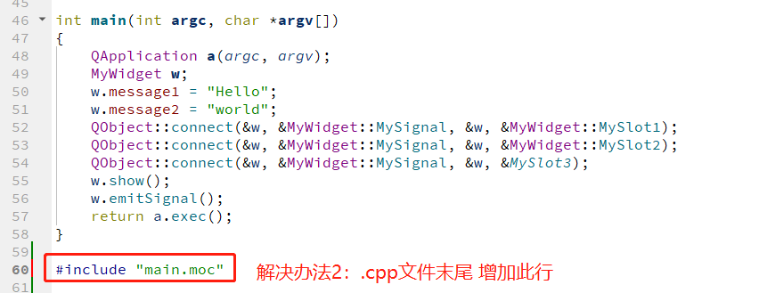 解决办法2:在.cpp文件末尾增加#include "main.moc"