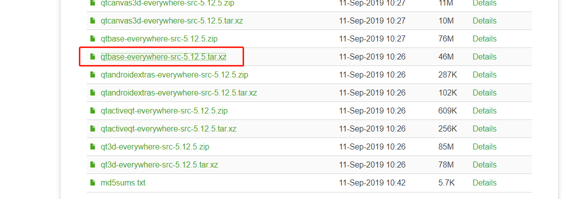 源码压缩包目录及名称:https://download.qt.io/archive/qt/5.12/5.12.5/submodules/qtbase-everywhere-src-5.12.5.tar.xz