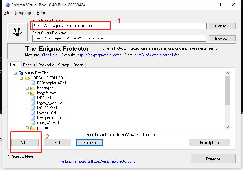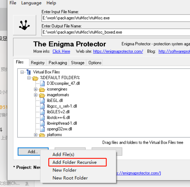 1.5 通过Enigma Virtual Box工具,把动态库与exe打包成单个exe文件