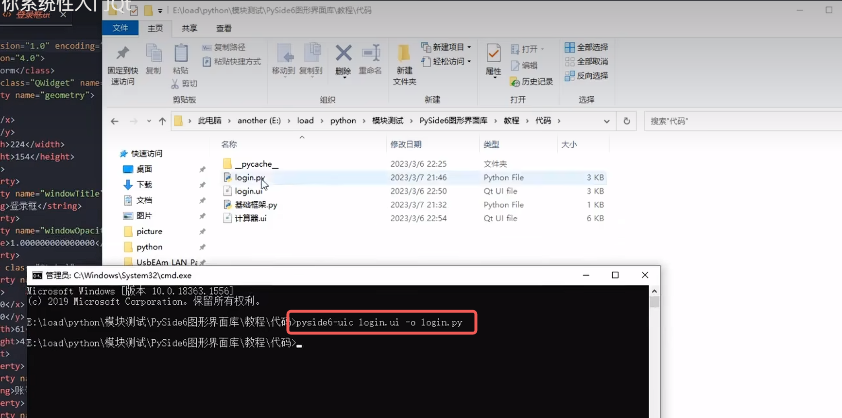 或者使用指令转换(先进入.ui文件的目录,然后在上方输入框输入cmd打开终端,然后输入该指令)