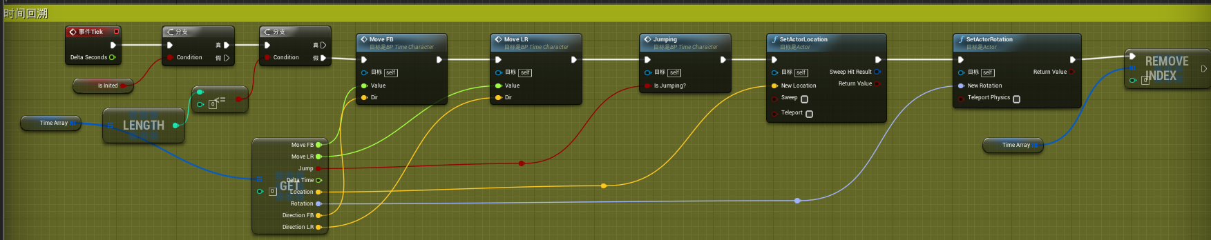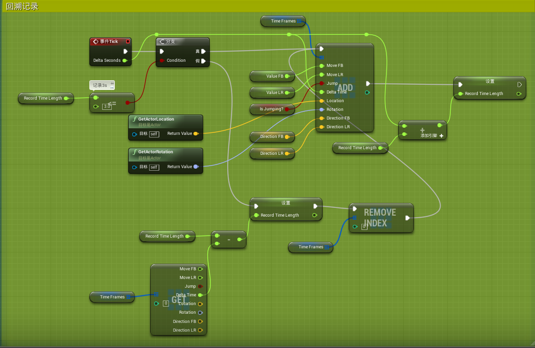 对玩家的输入进行实时记录,并在记录的时间范围内创建一个新的角色使用玩家记录的操作控制它,以实现时间回溯的效果;