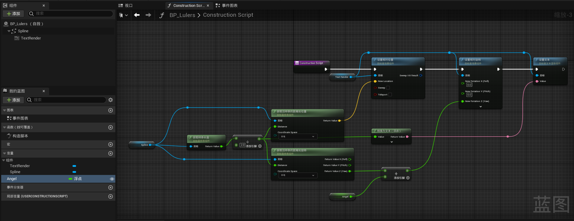 使用样条线和文本渲染组件进行制作