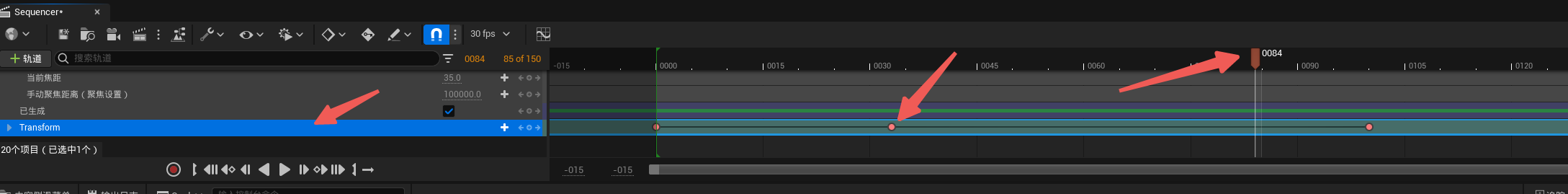 选中transform轨道按下“Enter”键进行关键帧