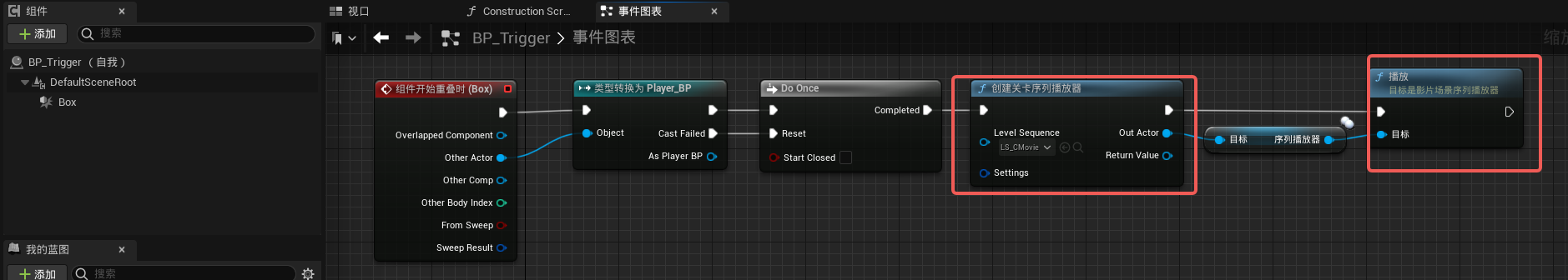 先制作一个关卡序列,然后使用触发器来播放该关卡序列