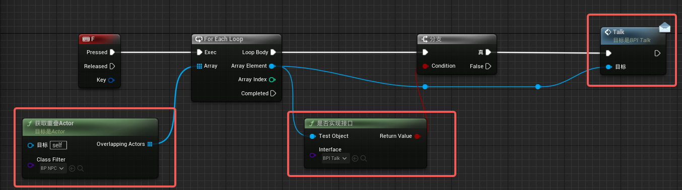 创建一个NPC角色蓝图,当玩家与之重叠时玩家的角色蓝图可以按某个键通过接口调用Npc角色蓝图中的方法,而UI则通过NPC角色蓝图创建;