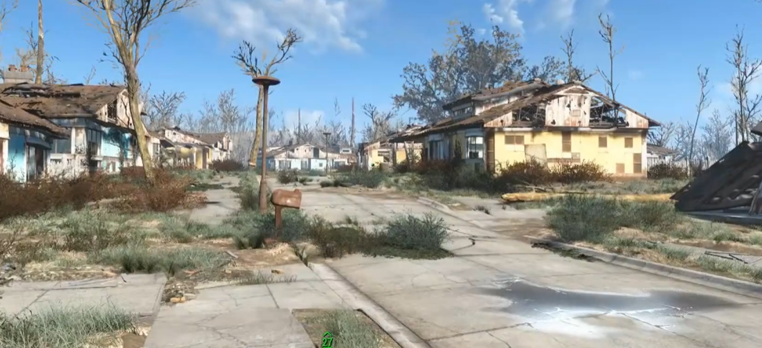 1.《辐射4》中大量的室内空间的门对着的往往是一个比较空旷的场地,这么做的原因是当玩家进出室内和开放世界的场景时,潜意识中会有一种“我来到了XX”的确认感;