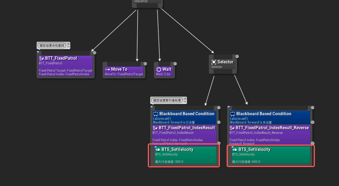 现在,我们可以通过修改这个服务节点的速度参数,使正向巡逻和反向巡逻时的移动速度产生不同