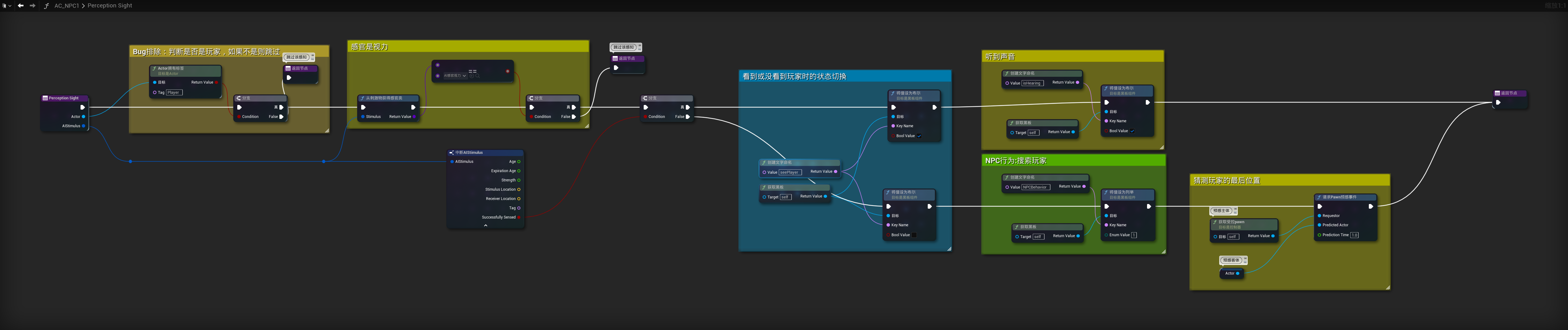 当多个AI互相看见的情况下会一直执行搜索行为树分支,这个原因是视觉逻辑的检测对象没有被拿出来单独处理