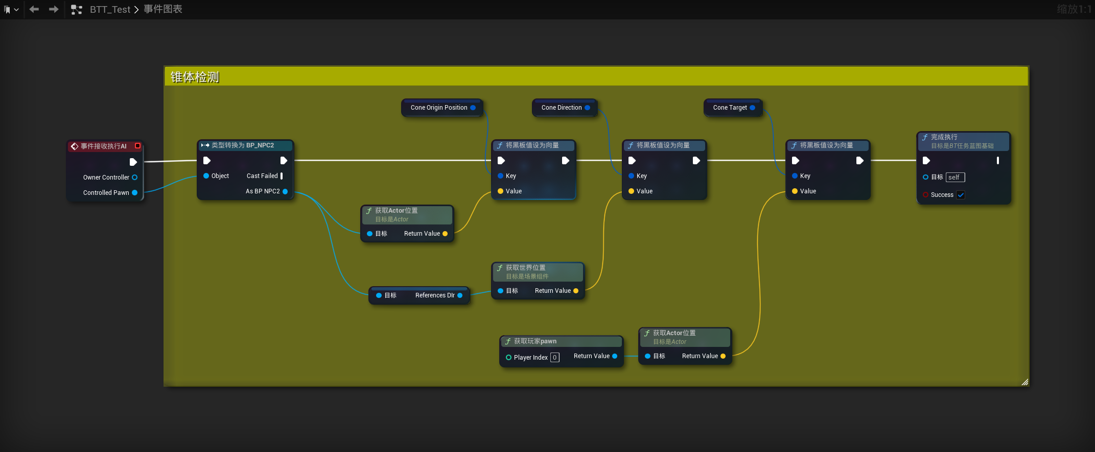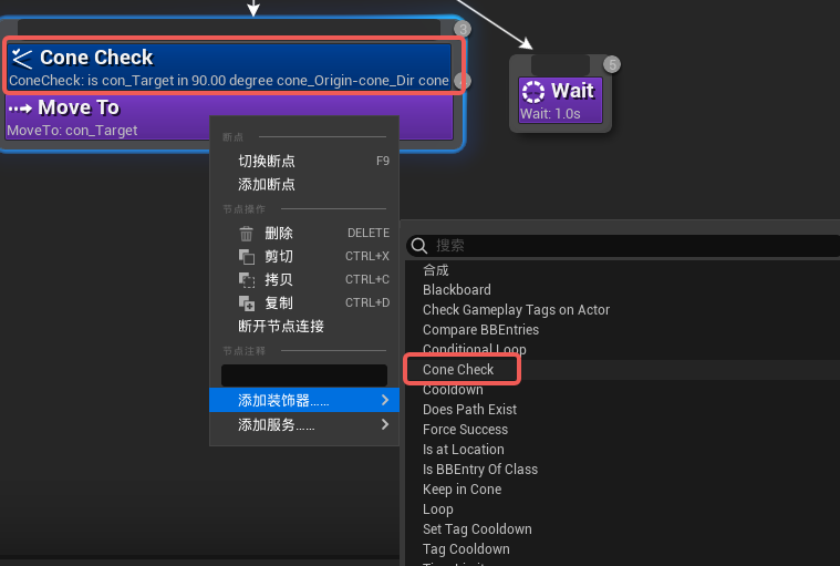 例子:这个例子将使用锥体检测让AI移动到玩家的位置
