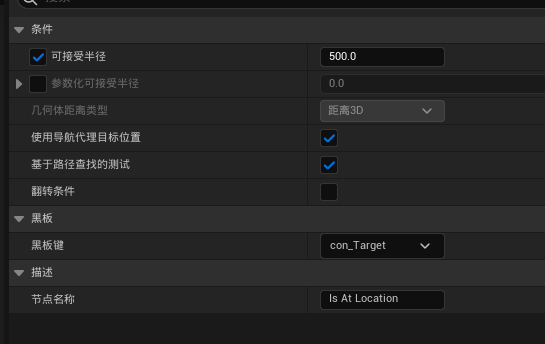 符合条件则循环,这个节点的作用是检查bool值黑板键是否符合自身细节面板中的设置,然后决定是否执行其附加的节点