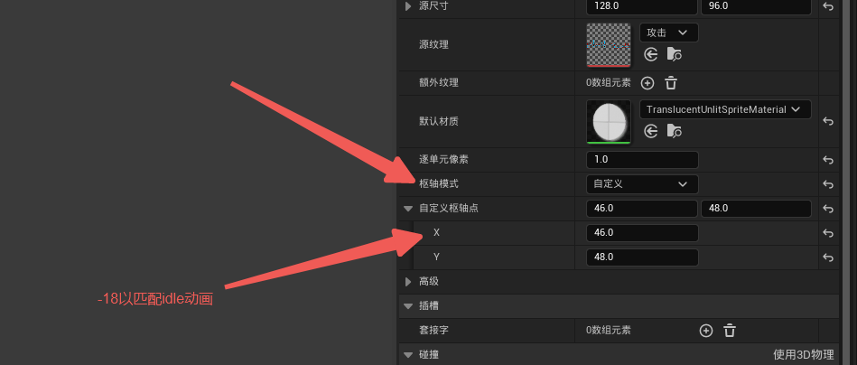 基本步骤和之前一样,但是每张动画的精灵图片需要对X轴进行-18的调整,保证播放动画时轴不会出现出入