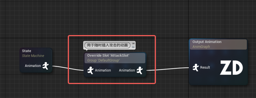在角色动画蓝图中添加一个Attack插槽