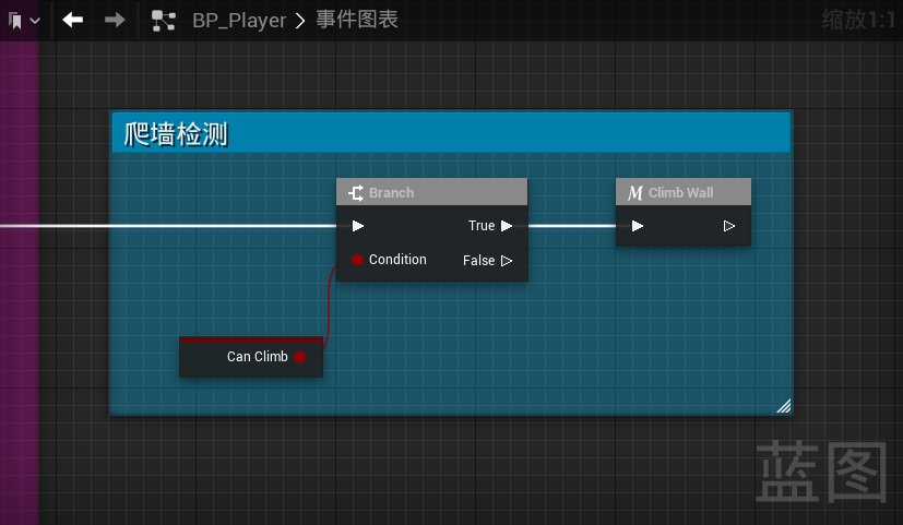- 玩家角色蓝图中添加攀爬检测机制的宏