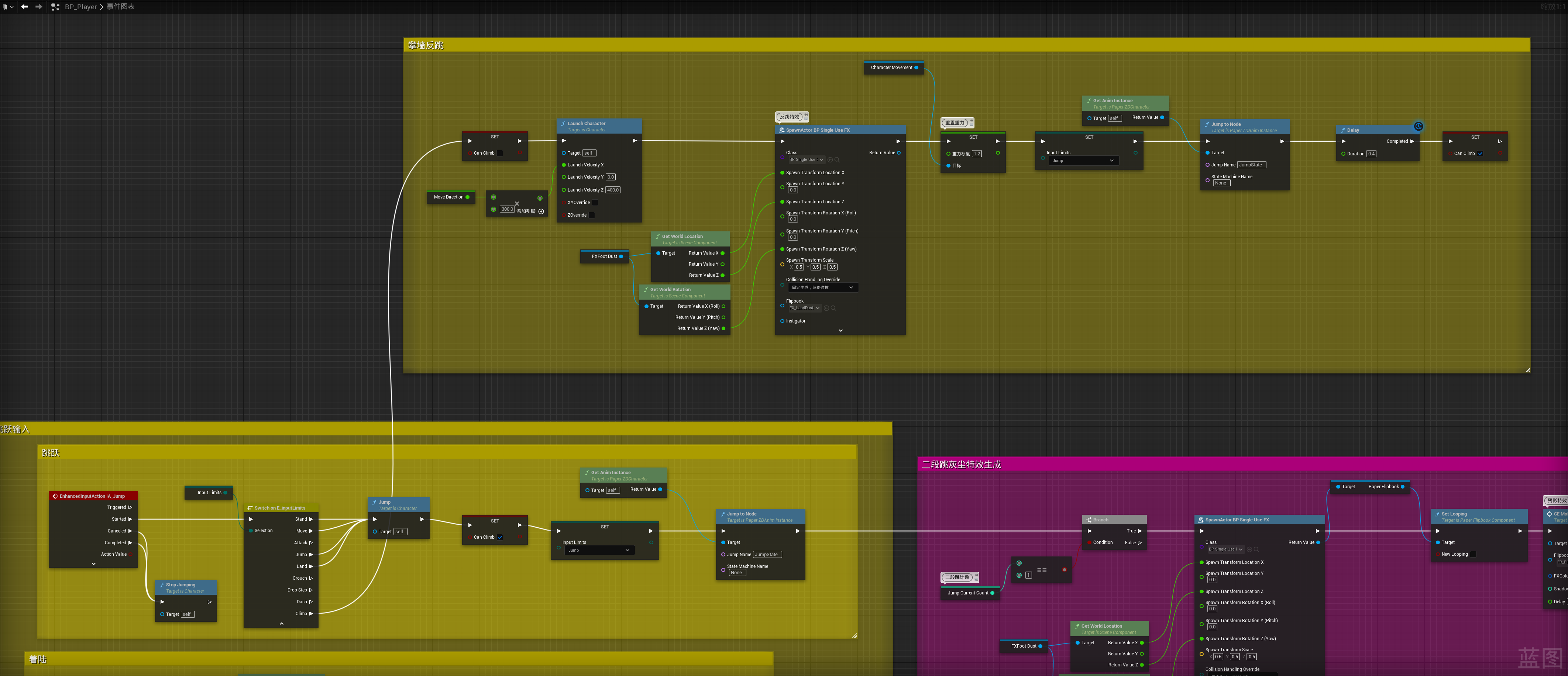 - 玩家角色蓝图的跳跃输入添加攀爬反跳功能的逻辑