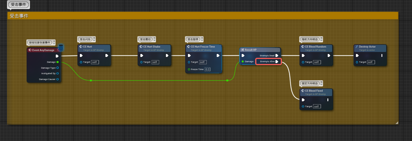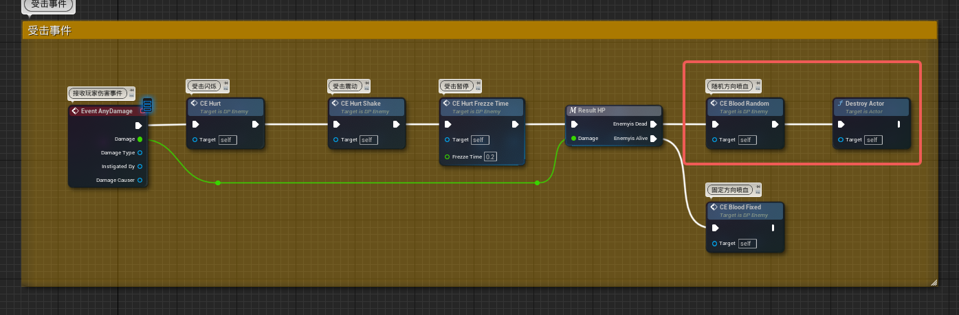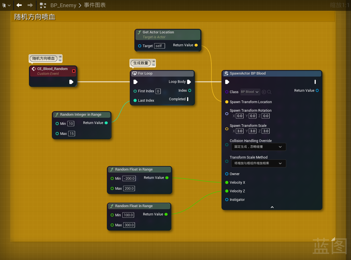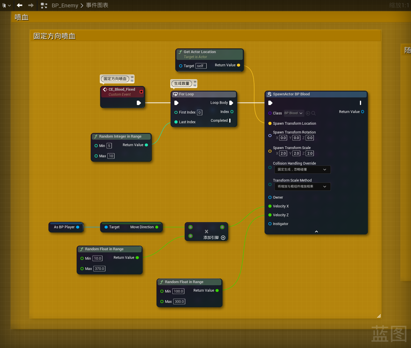 - 在敌人父类蓝图中编写两种喷血方式的逻辑