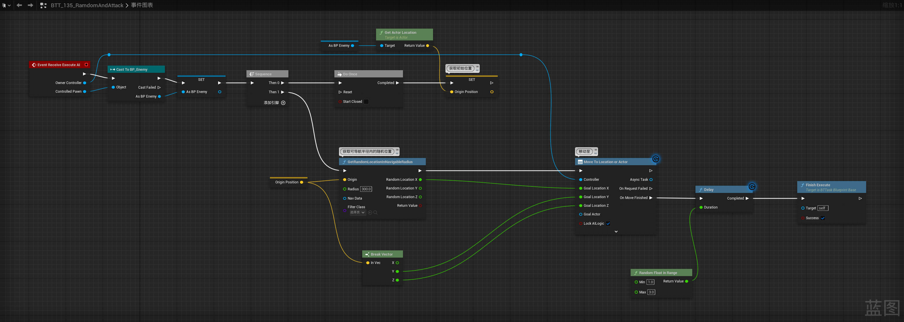 - 创建敌人135的子行为树并创建一个BTT(范围内随机巡逻)