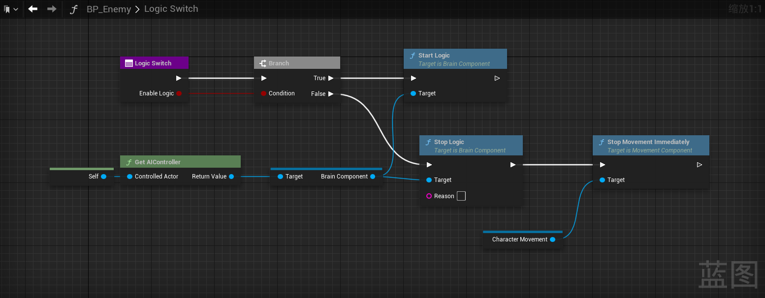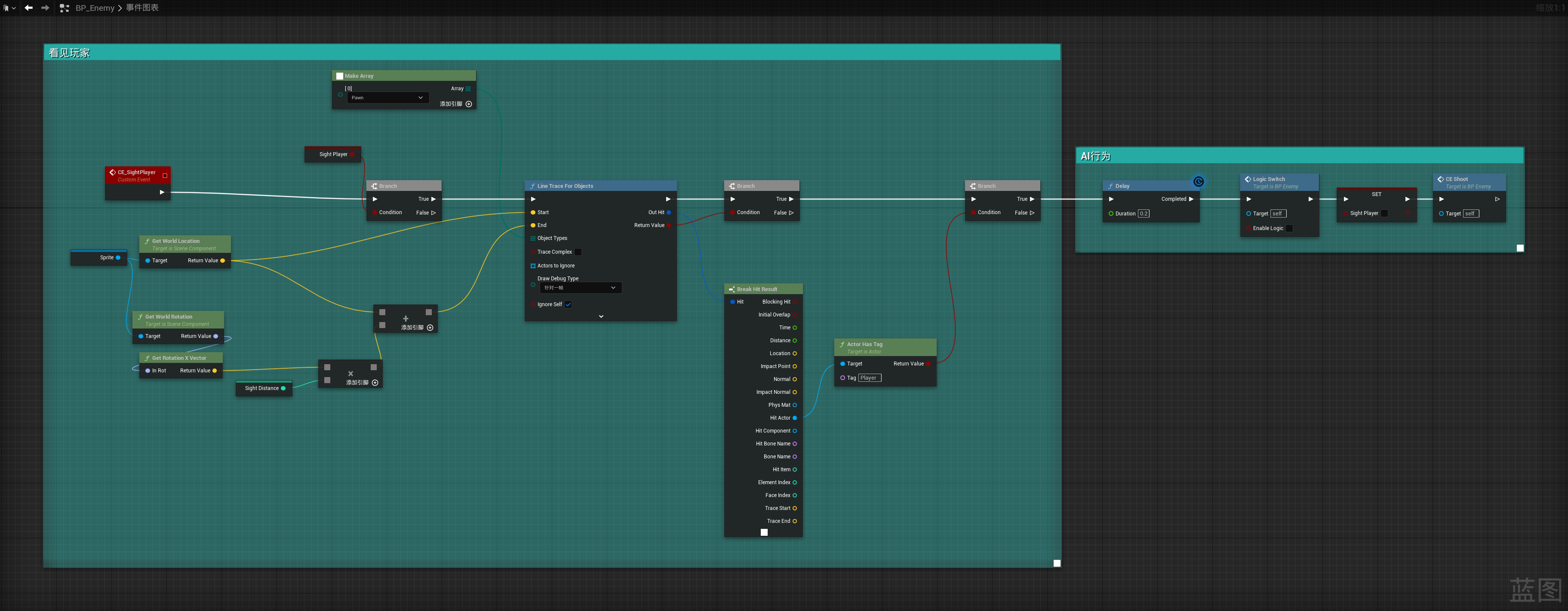 没有主要使用行为树来制作AI逻辑,逻辑由父级蓝图和子蓝图和Task之间的互相调用形成