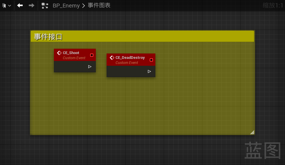 创建事件接口,方便子类蓝图调用(这种用法和接口有些相似,相当于在父类蓝图中创建了一个接口,然后在子类蓝图中实现它,而父级蓝图并不需要实现它,这样做方便做子类蓝图的定制化)