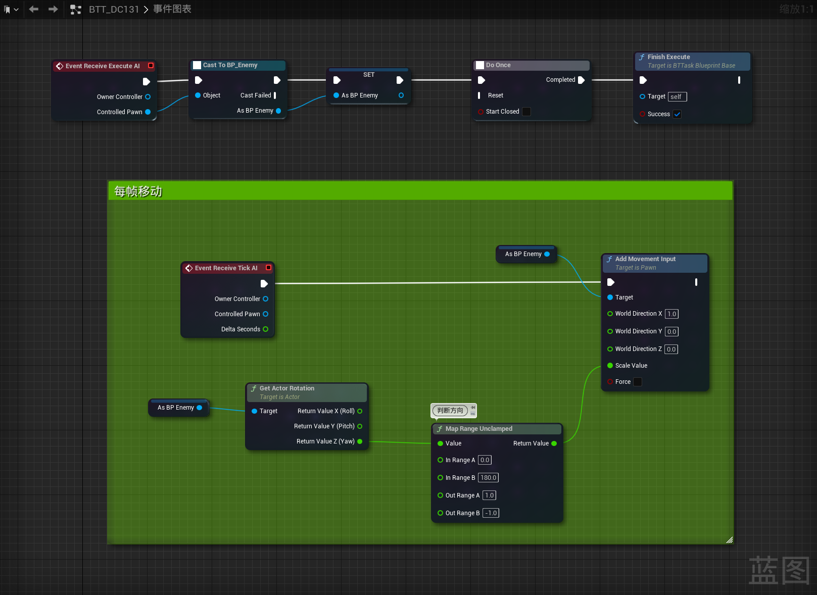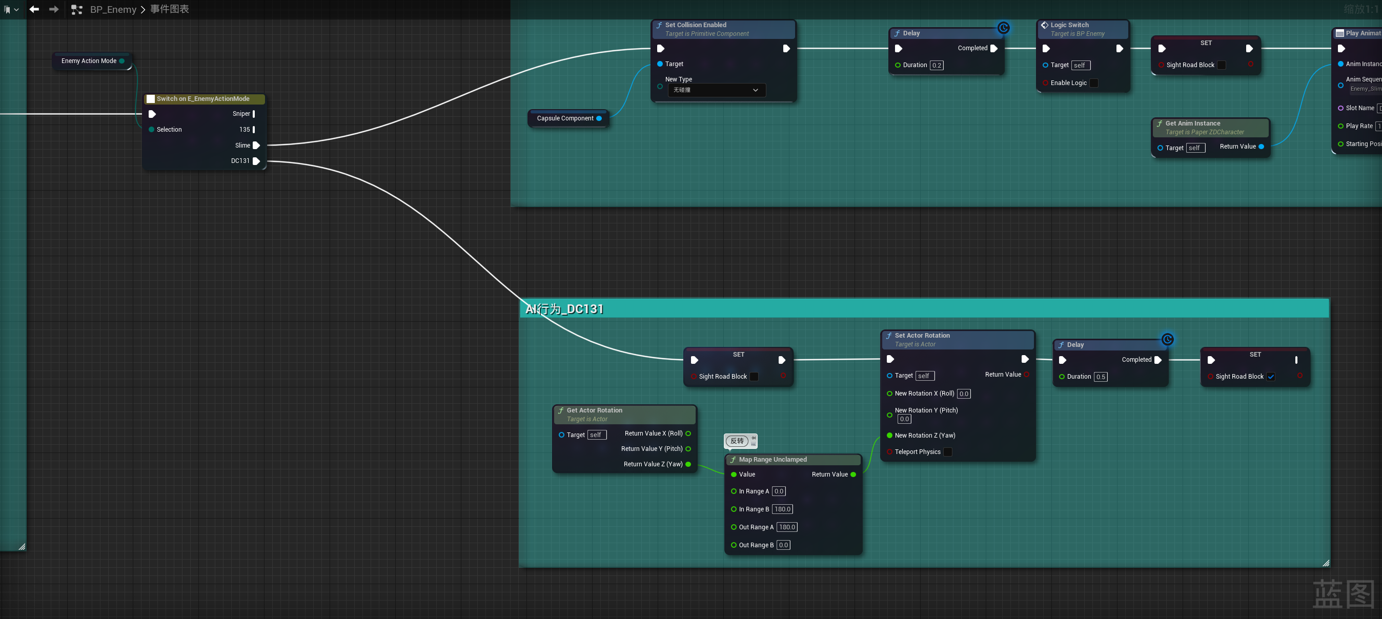 - 在Enemy父级蓝图中编写DC131的逻辑