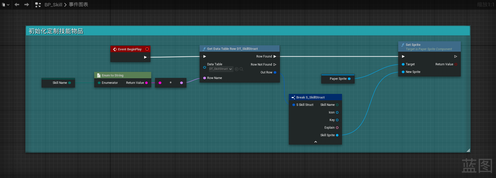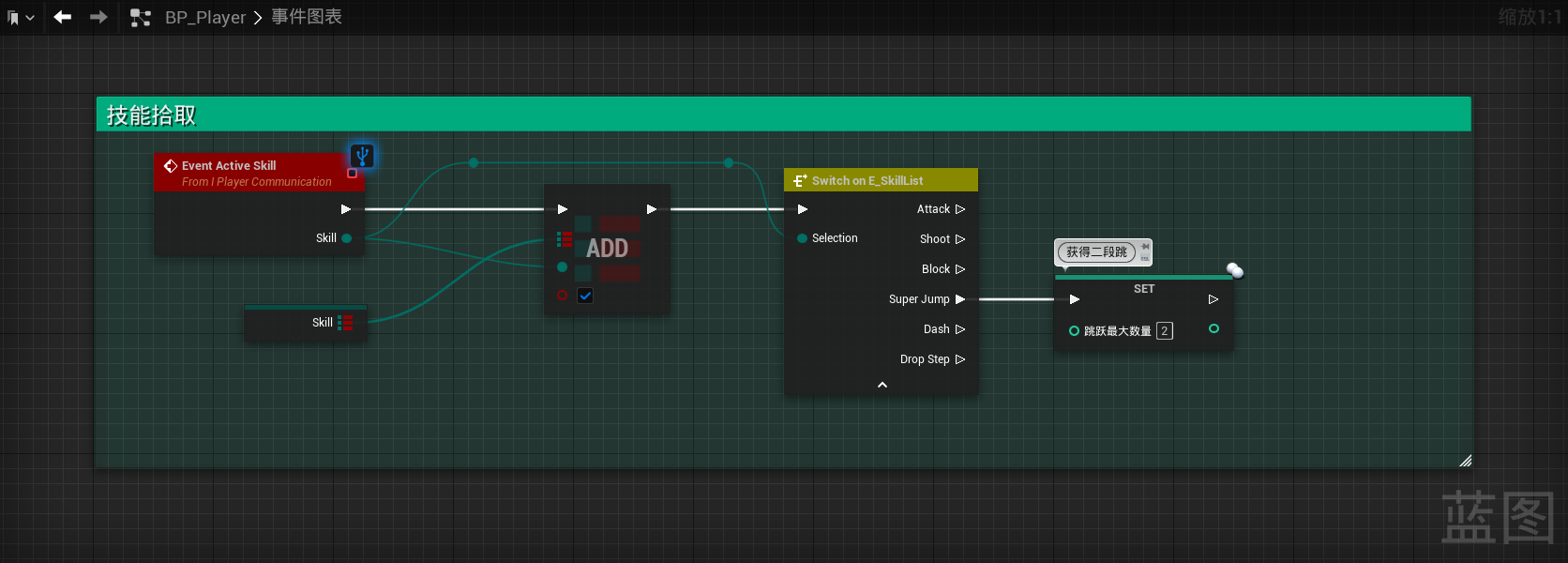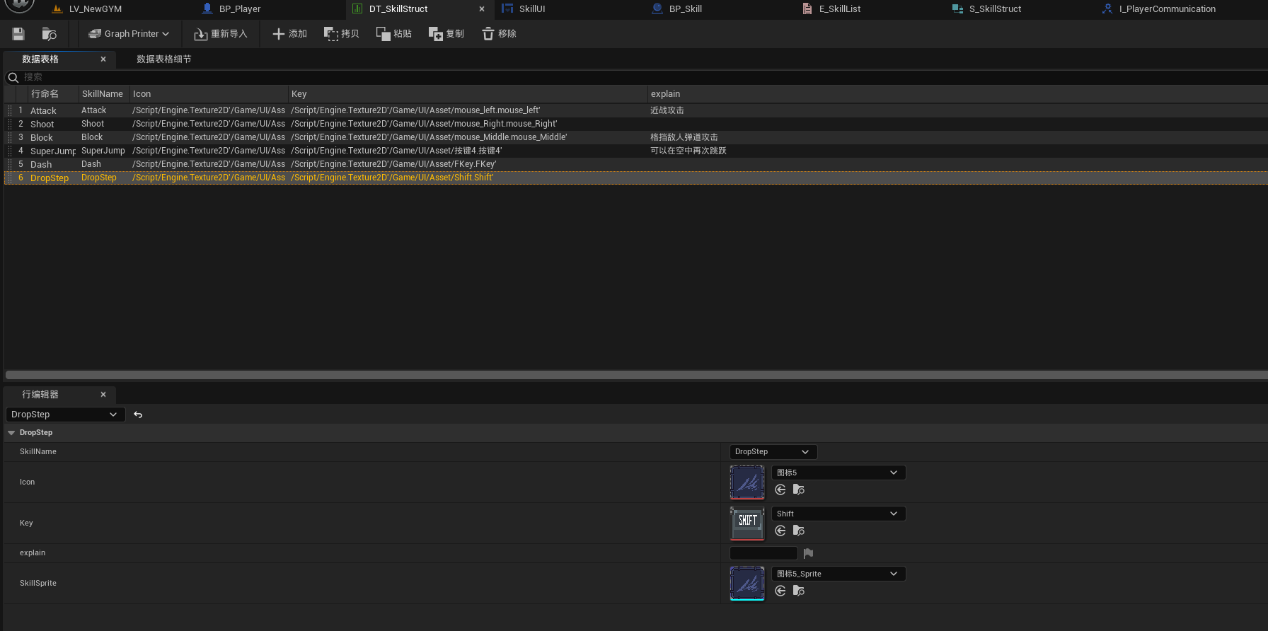 玩家大部分技能被禁用,只有当技能物品被拾取时才能启用,而启用则通过数据表格来传递参数(和技能UI一样)