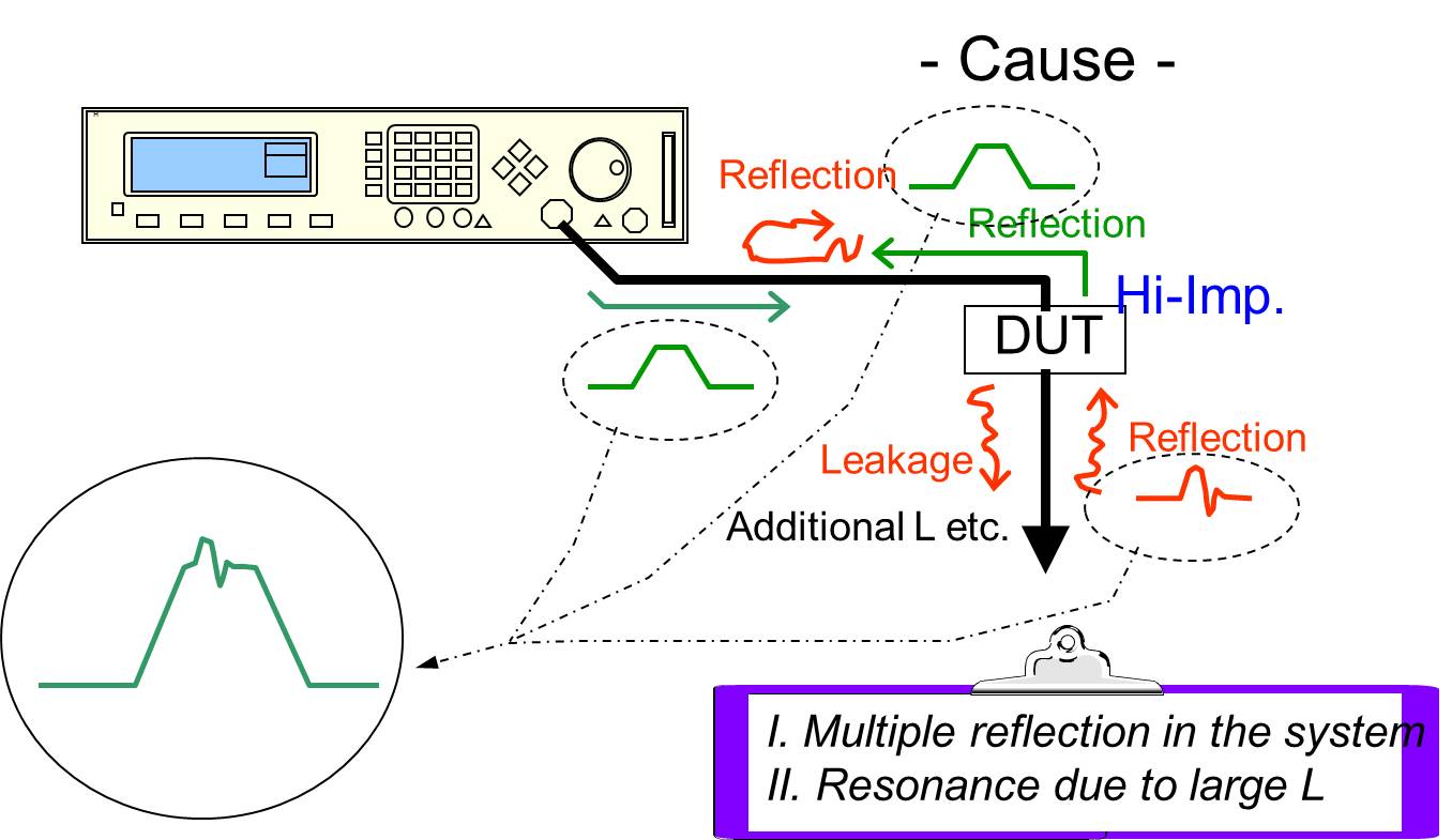 然而由于传输线的多重反射及电感效应,实际测试脉冲已经引入了失真: