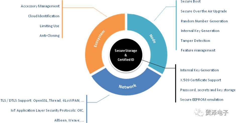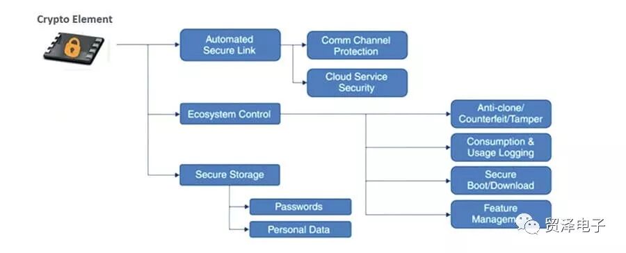 这些加密元素(图2)——更小的MCU,都配备了硬件加密加速器,以执行强大的身份验证,从而保护私钥,证书和其他敏感的安全数据,防止僵尸网络入侵。 此外,传统的TLS标准在软件上实现身份认证和密钥存储,在软件上实现并无必要,加密部件通过消除以软件为中心的安全实现复杂性,简化了与亚马逊网页服务(AWS)等云服务的相互认证。
