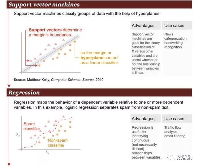 你应该使用哪种机器学习算法?这在很大程度上依赖于可用数据的性质和数量以及每一个特定用例中你的训练目标。不要使用最复杂的算法,除非其结果值得付出昂贵的开销和资源。这里给出了一些最常见的算法,按使用简单程度排序。更多内容可参阅机器之心的文章《机器学习算法集锦:从贝叶斯到深度学习及各自优缺点》和《经验之谈:如何为你的机器学习问题选择合适的算法?》