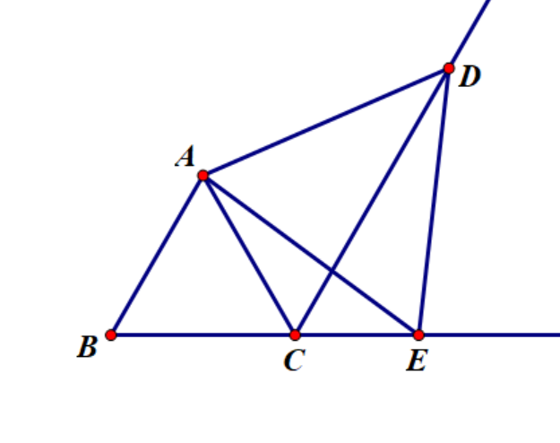 Q: 如图,有两个等边 $\triangle ABC,\triangle ADE$ 且 $B,C,E$ 三点共线,求证 $CD$ 平分 $\angle ACE$