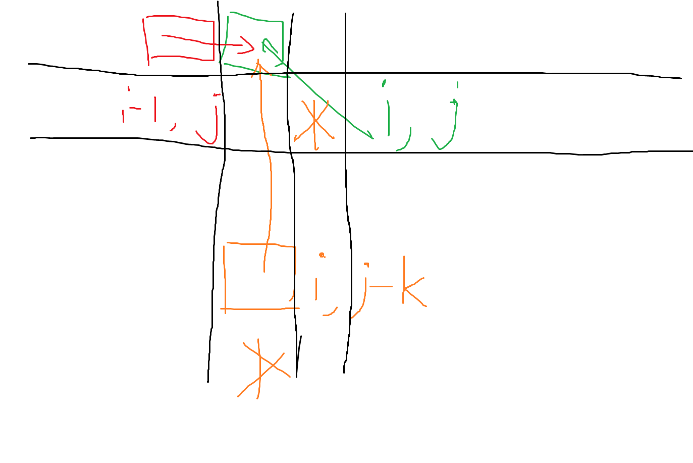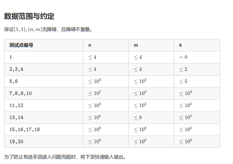 怎么计算题中不同的路径数? 规定:合法路径必须先右再上 如: 得: \(f[i][j]+=f[i-1][j]\) 若\(mp[i+1][j-1]=1\)(障碍物),再加一句\(f[i][j]+=f[i][j-k]\)其中k为(i,j)之下连续无障碍物的格数 轻松拿下前12个点 剩下的呢?