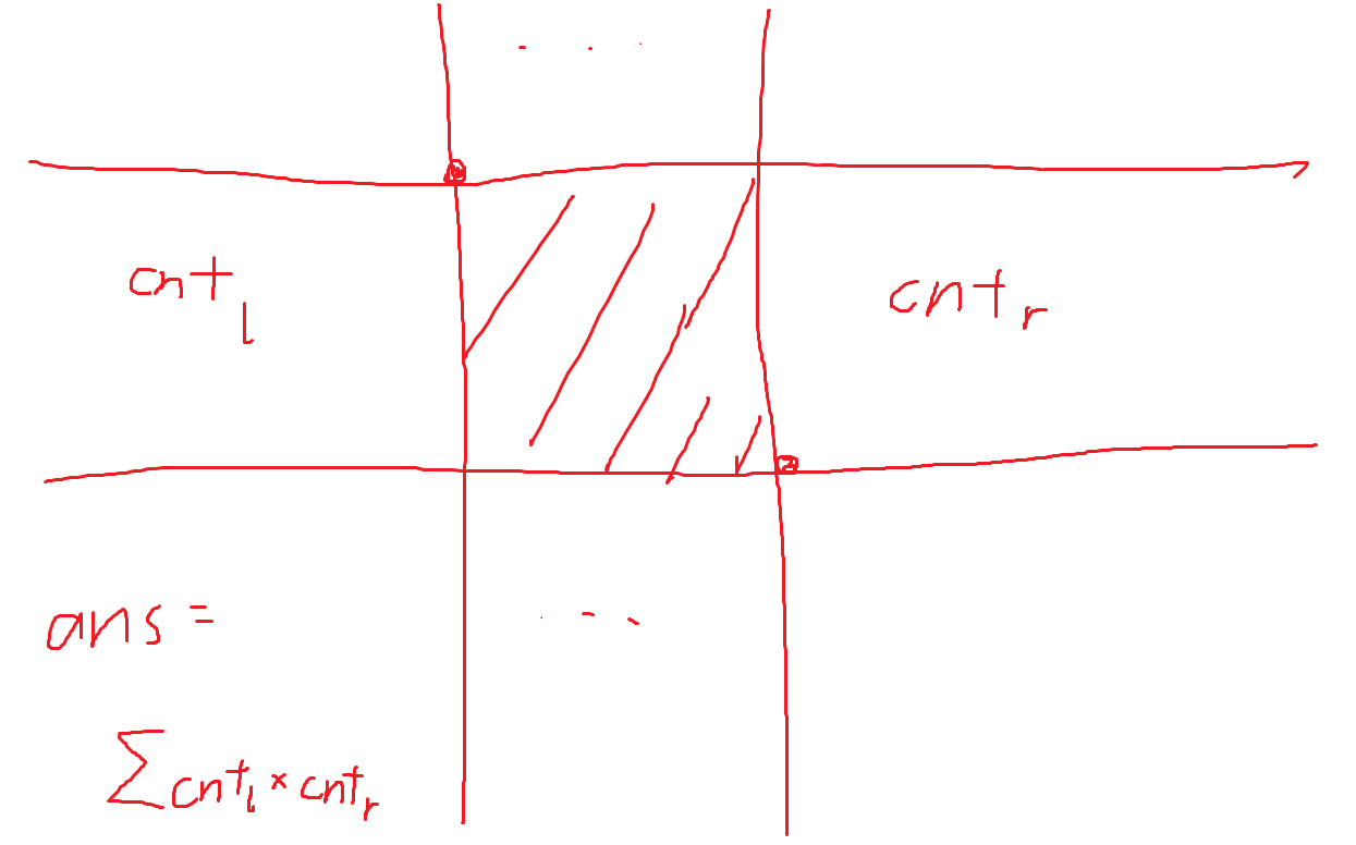 再数左右侧点的个数(预处理二维前缀和),相乘后每种相加即可