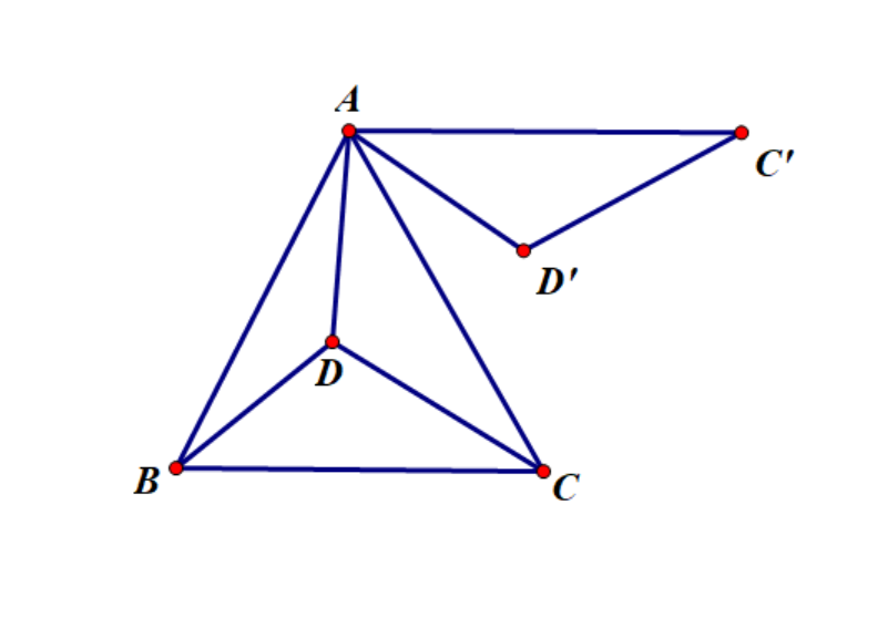 则将 \(\triangle ACD\) 绕点 \(A\) 逆时针旋转 \(60^{\circ}\) 得到 \(\triangle AC'D'\)。