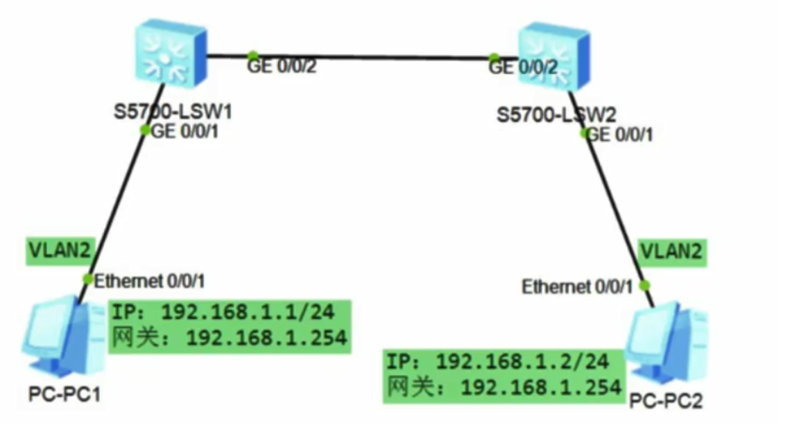 4、基于GVRP的vlan配置实验:交换机S1创建vlan2,S2可以学到并ping通。