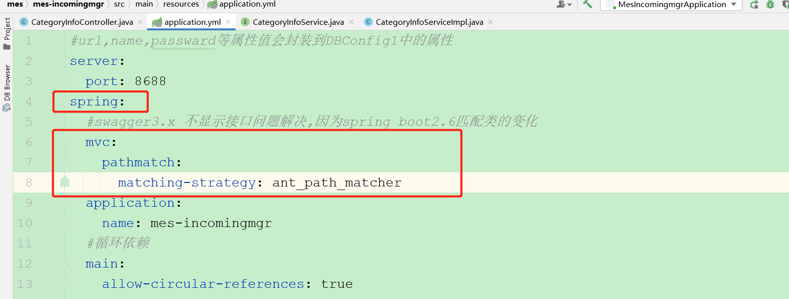 4.配置文件中也要加入配置,spring.mvc.pathmatch.matching-strategy=ant_path_matcher