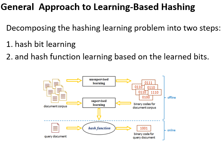 相较于数据独立方法,数据依赖方法(data-dependent methods/learning to hash)使用短的二进制代码可以获得更高的精度和可比较性。也可分为监督学习和非监督学习。