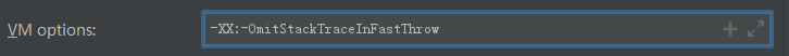 方法二:另一个解决办法是禁用该优化,即强制要求每次都要抛出有堆栈的异常, 即-XX:-OmitStackTraceInFastThrow,便可禁用该优化了(注意选项中的减号,加号则表示启用)