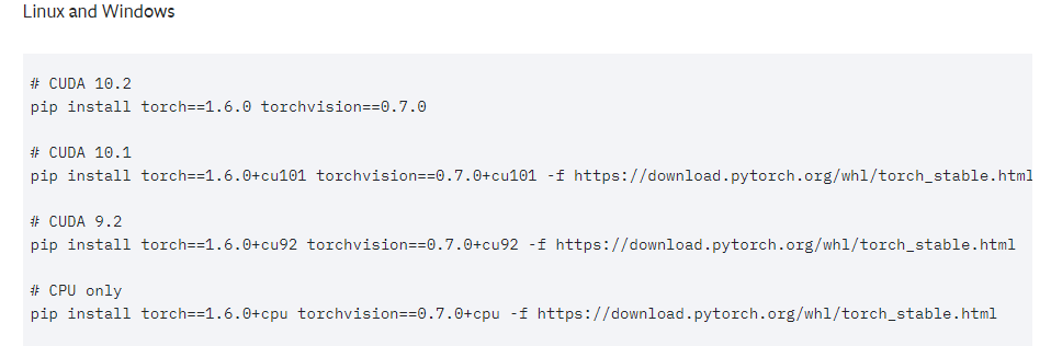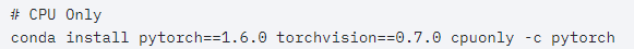 最后一条是CPU的 pytorch == 1.6.0 和 torchvision == 0.7.0 是匹配的,通过镜像来下载,