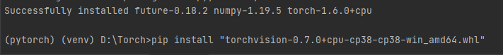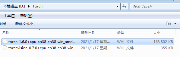 https://download.pytorch.org/whl/torch_stable.html 这个就是镜像地址 ,进入后找到这个两个 pytorch == 1.6.0 和 torchvision == 0.7.0 下载放d:torch下