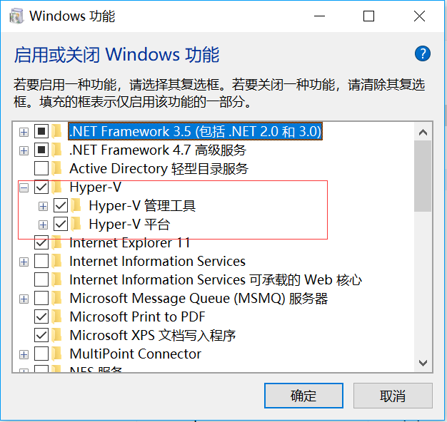 - 控制面板-所有控制面板项-程序和功能-启用或关闭windows功能:勾选红框中的选项