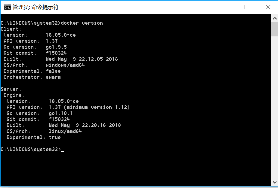 - 打开命令行输入docker version,会显示安装的版本信息,安装成功!