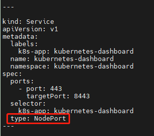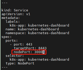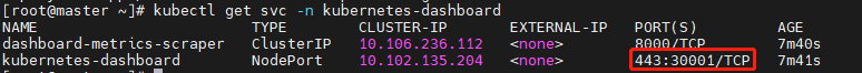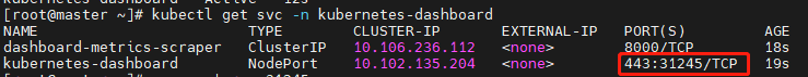 [root@master ~]# kubectl get svc -n kubernetes-dashboard