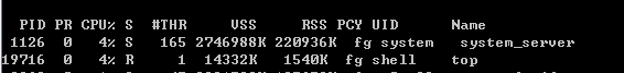 adb shell top | grep 应用对应PID 实时显示指定进程的资源占用情况