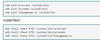 一般来说内存占用大小有如下规律:VSS >= RSS >= PSS >= USS,其中USS只能通过procrank获取,首先网上下载libpagemap.so, procmem, procrank,然后push到android手机中。有的root机自带这几个文件,不需要额外下载。