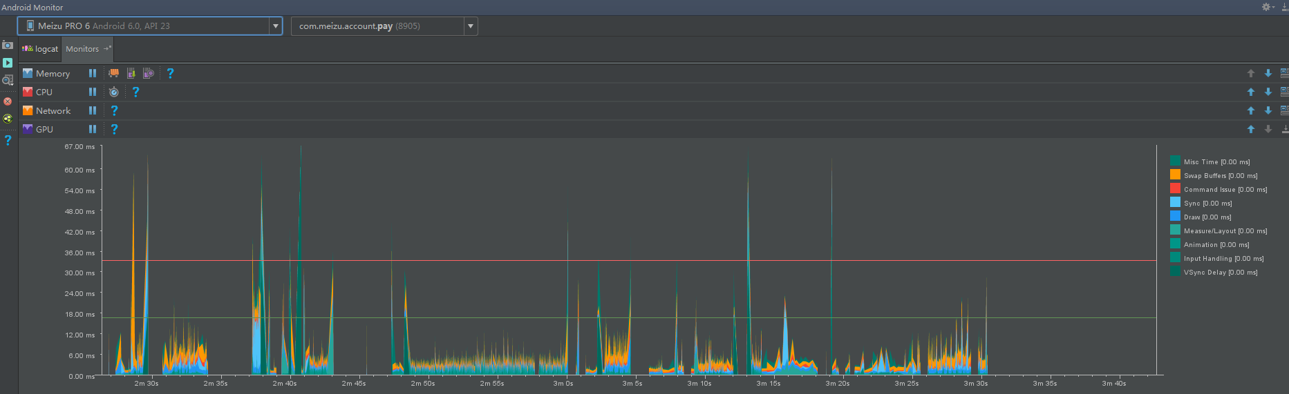 - Measure/Layout:表示布局的onMeasure与onLayout所花费的时间,一旦时间过长,就需要仔细检查自己的布局是不是存在严重的性能问题。