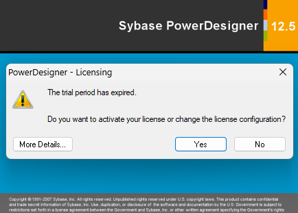 今天打开Powerdesigner时,突然显示以下信息导致进不去应用