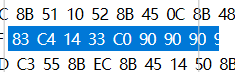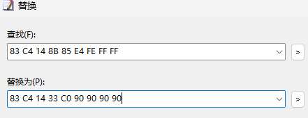 将其替换为 83 C4 14 33 C0 90 90 90 90 (用于修改程序的二进制代码。在这种情况下,这些代码用于修改软件的特定行为或属性。)
