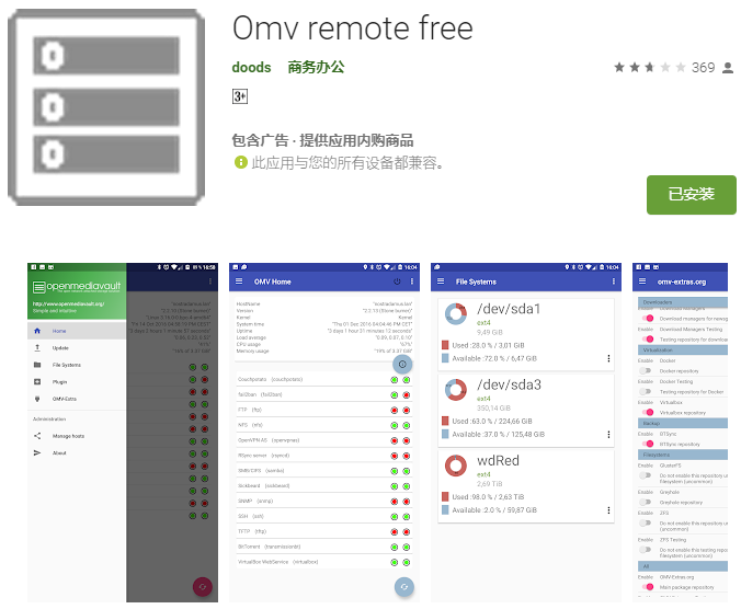 如果想自己下载可以参考我上一篇PVE手机管理APP下载方式安装,Google Play详情页地址是https://play.google.com/store/apps/details?id=com.dev.doods.omvremote2&hl=zh-CN