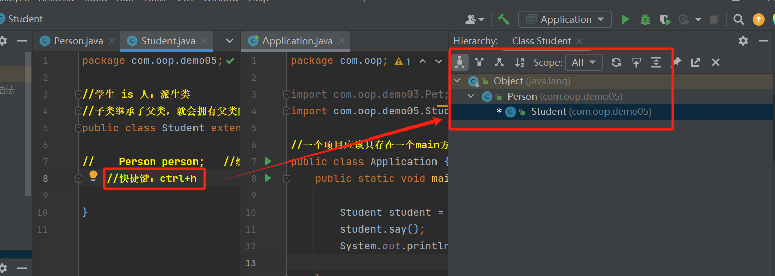 ctrl+h--打开继承树