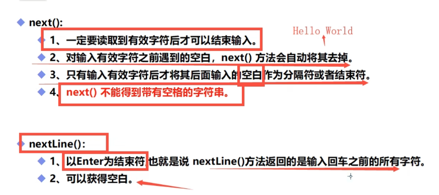 通过Scanner类的next()与nextLine()方法获取输入的字符串,在读取前我们一般需要使用hasNxet()与hasNextLine()判断是否还有输入的数据。