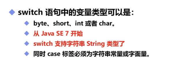 switch case语句:判断一个变量与一系列值中的某个值是否相等,每个值称为一个分支